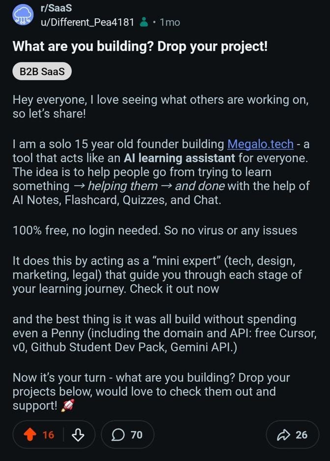 After learning from my community experiences, I started building Megalo solo in June 2025.
