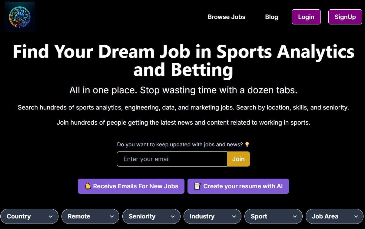 So, I decided to do something small that I would use myself. The struggle to find a sports analytics position was real, there wasn’t a single source of truth. I relied on LinkedIn, Indeed, some betting niches, some companies that I found, going to teams careers page.