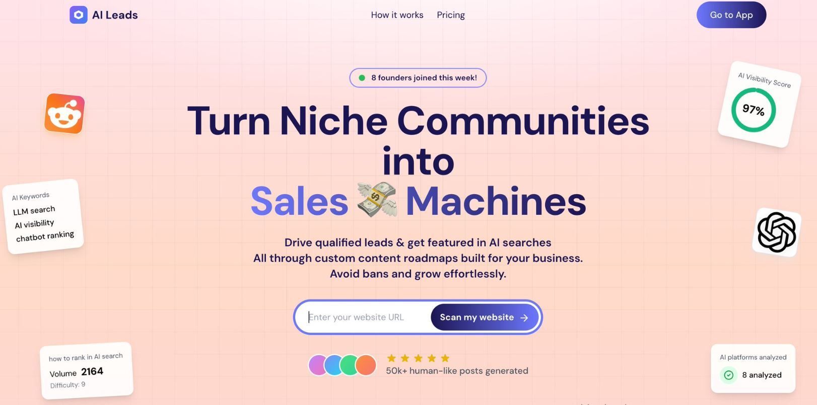 Ai Leads is an AI-powered inbound lead generation platform that turns niche communities into customers. It automates Reddit marketing, Facebook group marketing, and B2B lead generation on LinkedIn to build a powerful lead generation pipeline.