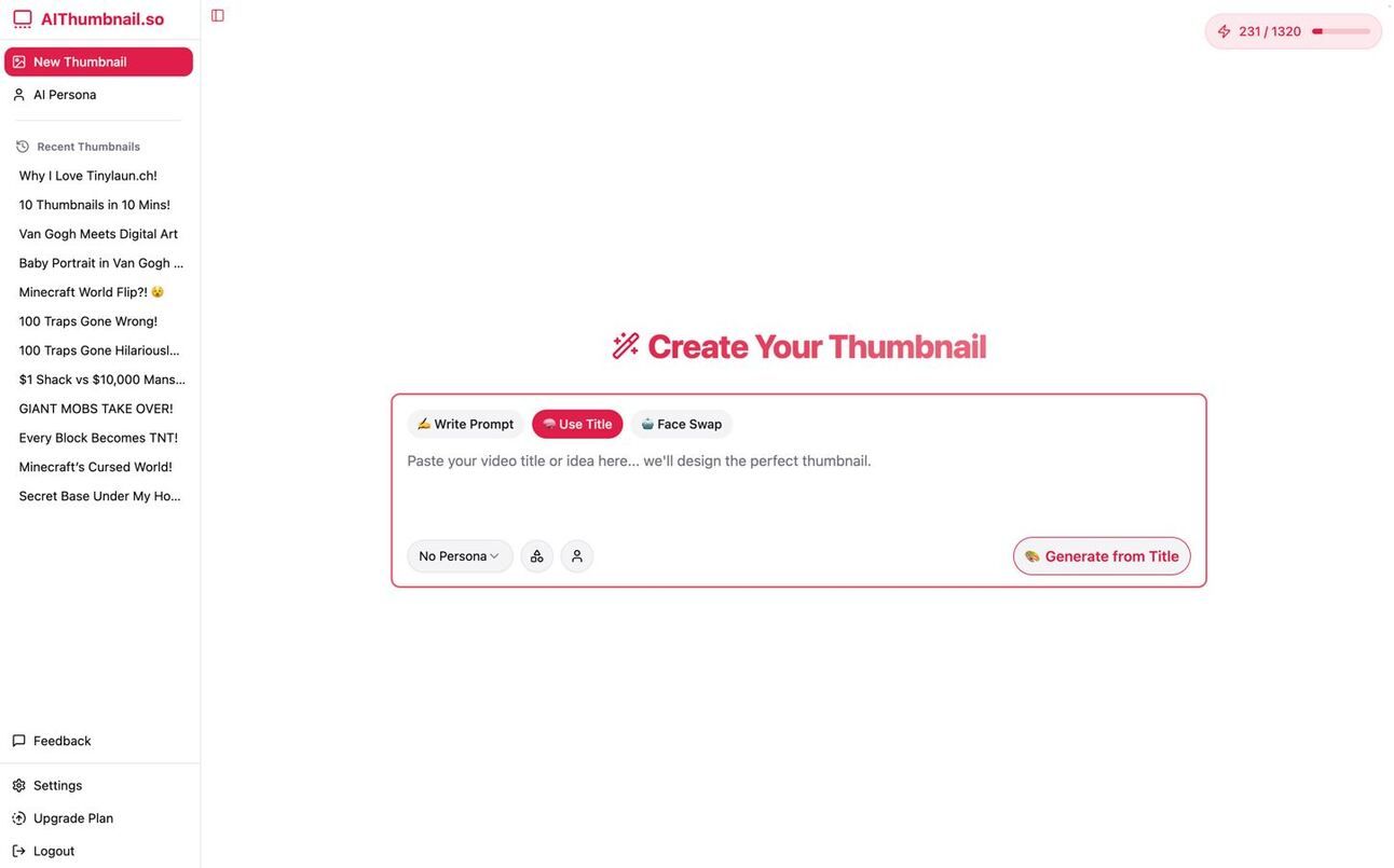 That’s why I built AI Thumbnail, a tool to help YouTubers and marketing agencies create viral thumbnails using AI. It’s for brainstorming ideas fast, skipping the designer, and even injecting your own AI generated face into the image.