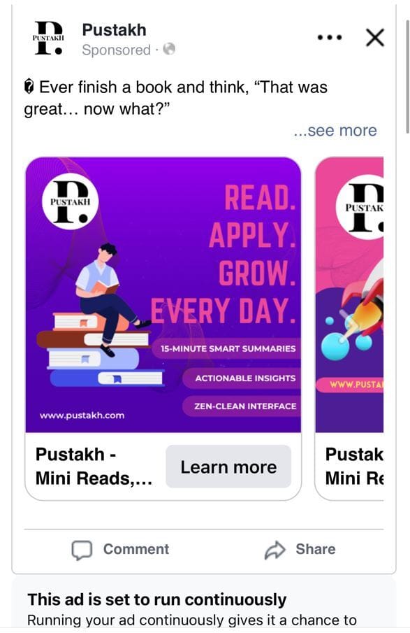 Facebook ad for Pustakh