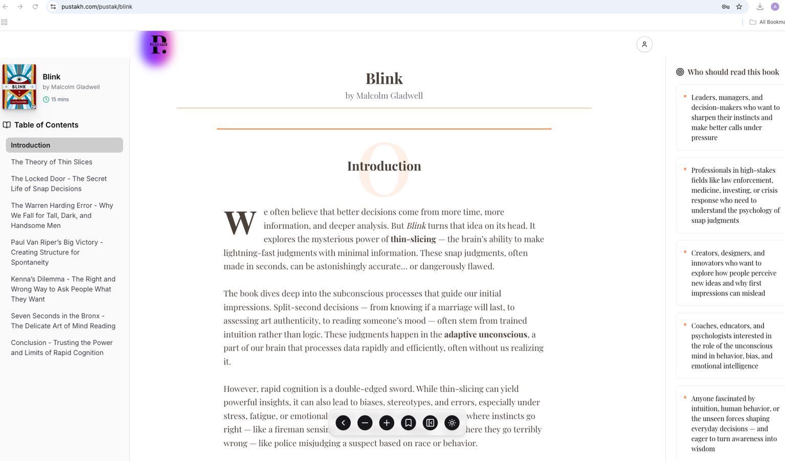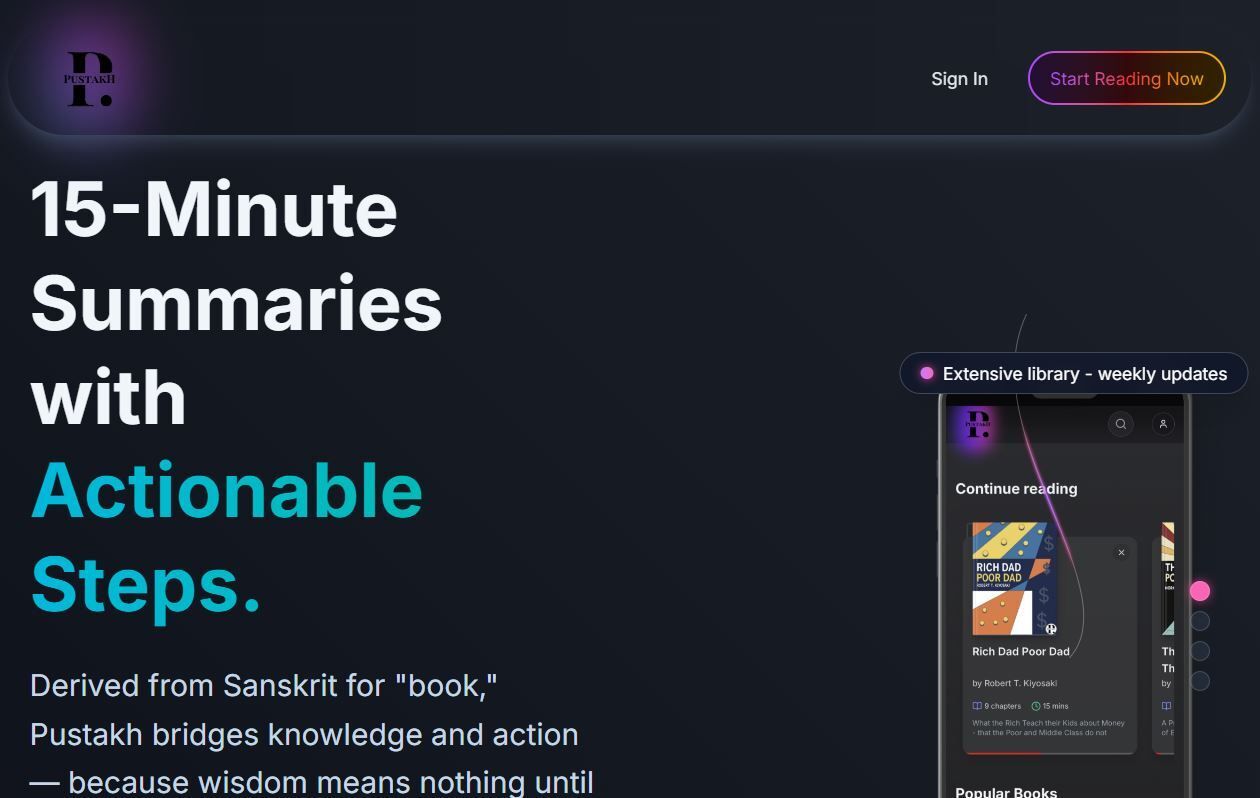 Pustakh (Sanskrit for books) distills the world’s best self-help books into 15-minute summaries with actionable steps. Each summary bridges the gap between reading and real transformation.