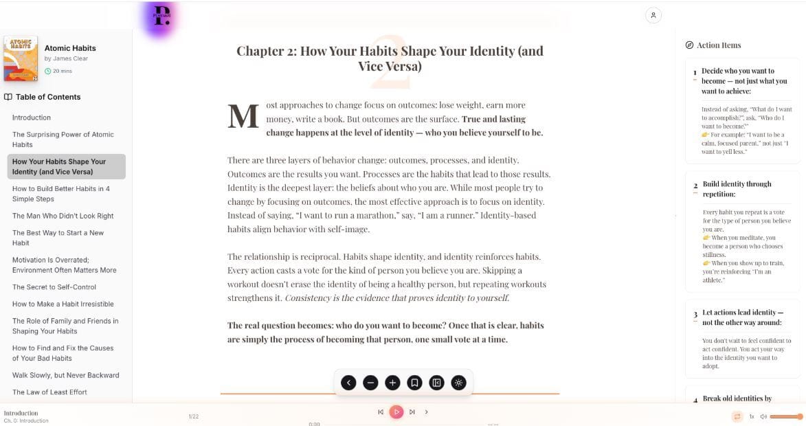 We have recently released select audio summaries so that you can now hear your favorite self-help books on the go. Our next release will be focused on AI-powered journeys designed to personalize each reader’s growth experience.